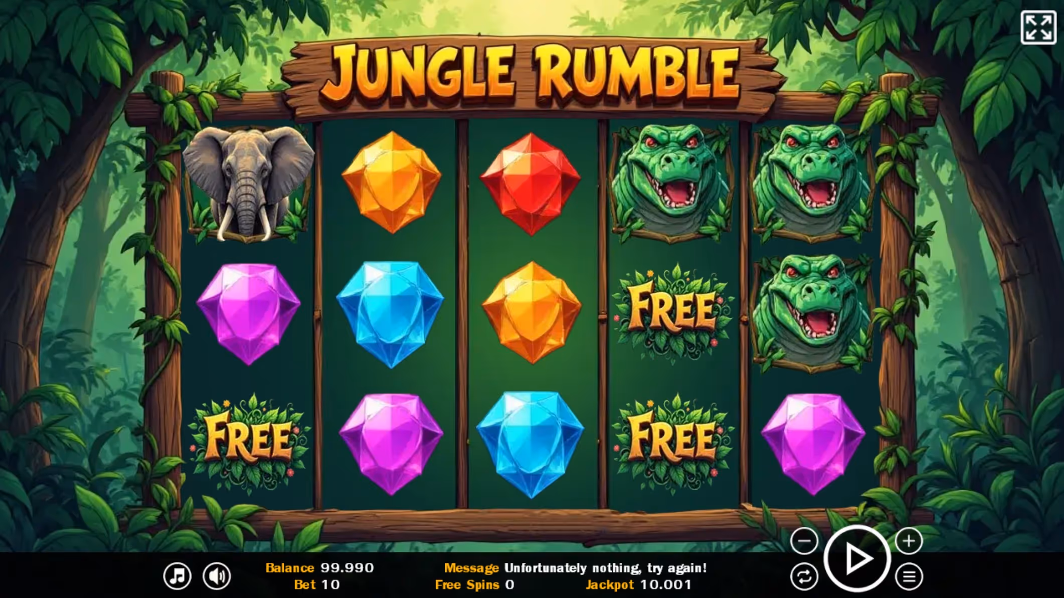 Uselevelcrft creates playful social titles built around bright worlds and easy moments of fun. Jungle Rumble is one of these projects and brings players into a colorful forest filled with glowing gems and lively characters. The experience is made for relaxed play where the focus rests on motion, color and atmosphere. Every spin moves through a calm jungle scene and builds a sense of friendly discovery. The game highlights simple interactions that invite players to stay for a moment and enjoy smooth animation and gentle pacing. Jungle Rumble was designed to feel cheerful without pressure and to offer a light way to escape into a warm and vivid setting.